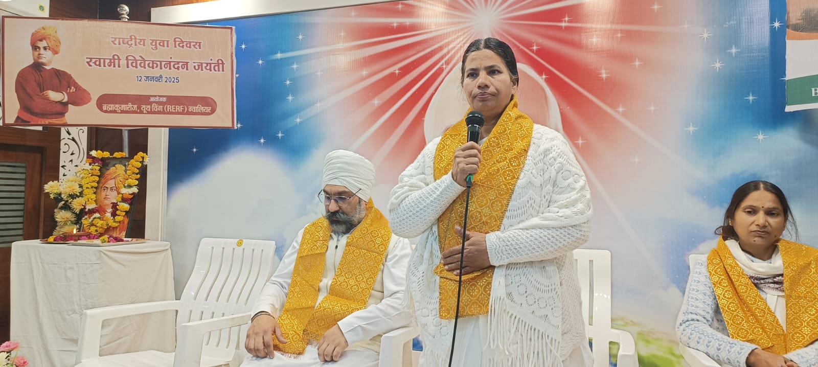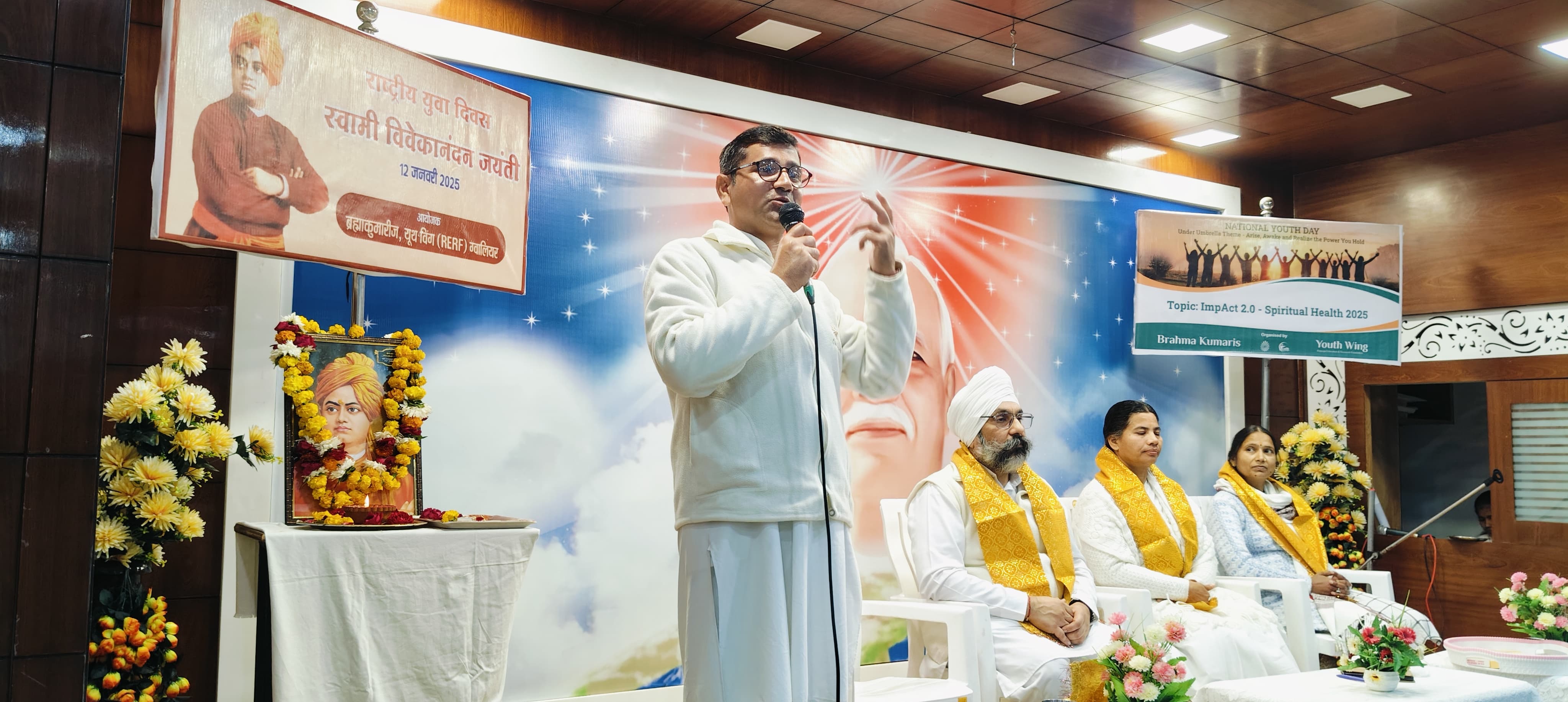 ग्वालियर: आज राष्ट्रीय युवा दिवस, स्वामी विवेकानंद जी की जयंती के पुनीत अवसर पर प्रजापिता ब्रह्माकुमारीज ईश्वरीय विश्व विद्यालय के युवा प्रभाग, राजयोग एज्युकेशन एण्ड रिसर्च फाउंडेशन के द्वारा शाम को प्रभु उपहार भवन माधौगंज में युवाओं के लिए विशेष कार्यक्रम का आयोजन किया गया। जिसमें मुख्य रूप से ब्रह्माकुमारीज लश्कर केंद्र प्रभारी बीके आदर्श दीदी, व्यवसायी एवं समाज सेवी पिंकी चौहान, प्रेरक वक्ता बीके डॉ गुरचरण सिंह, राजयोग प्रशिक्षक बीके प्रहलाद मौजूद थे।