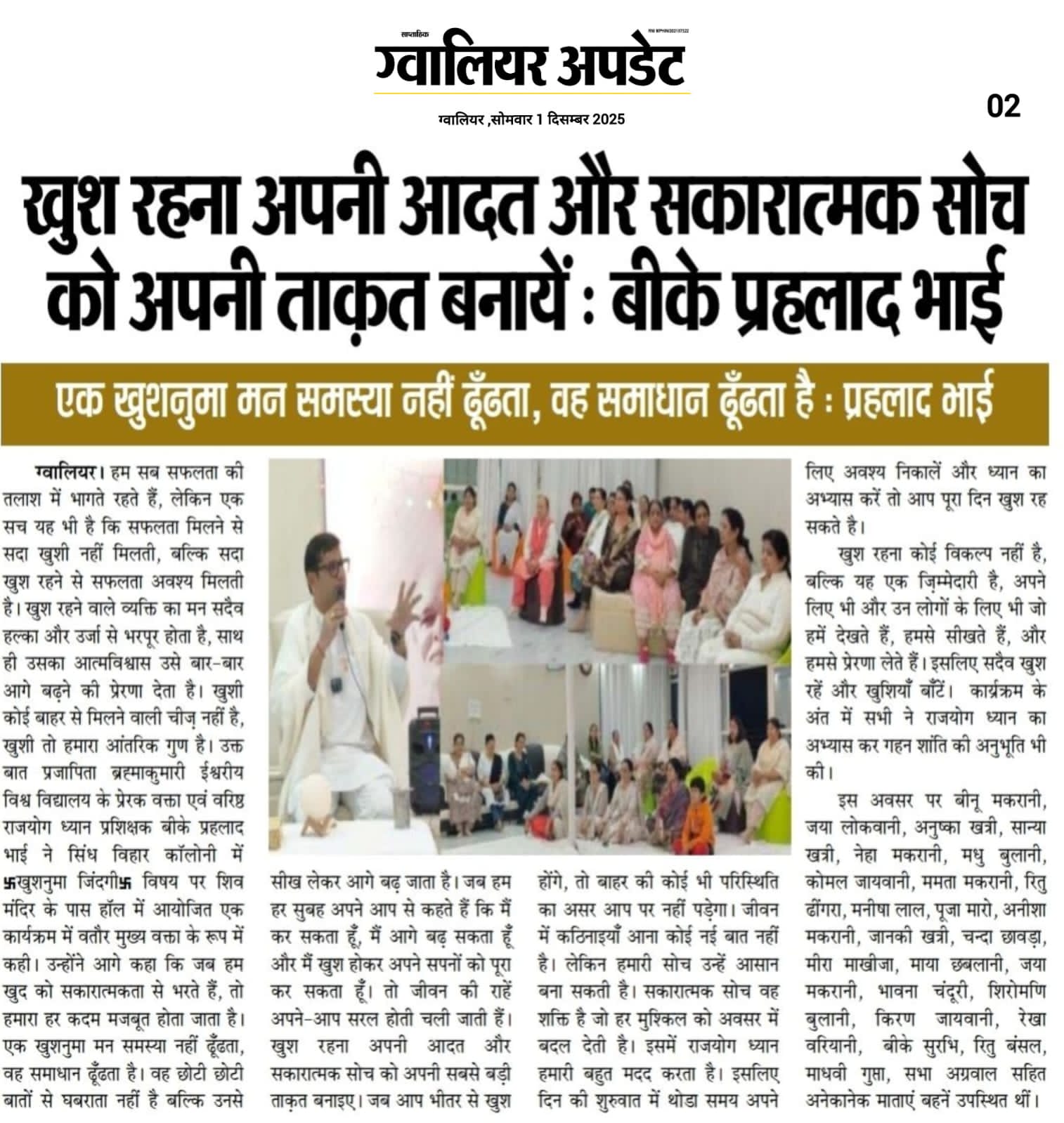 सकारात्मक सोच इंसान को हर कठिन परिस्थिति में हिम्मत देती है – बीके प्रहलाद भाई