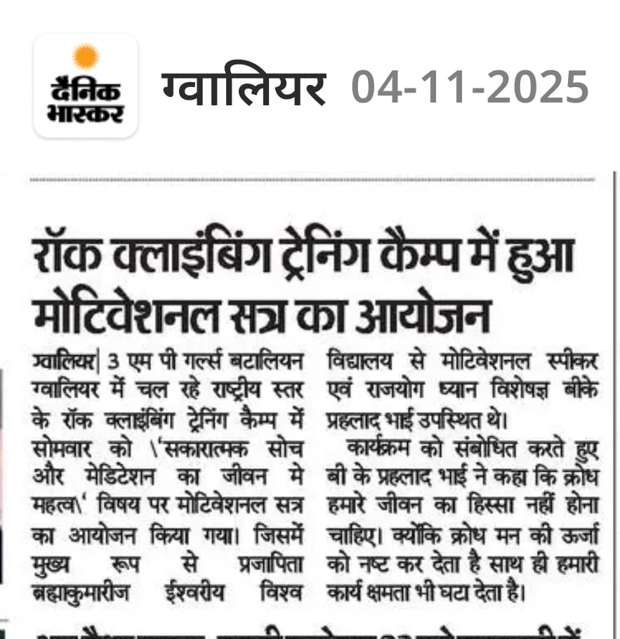 3 एम पी गर्ल्स बटालियन में चल रहे राष्ट्रीय स्तर के रॉक क्लाइंबिंग ट्रेनिंग कैम्प में हुआ मोटिवेशनल सत्र का आयोजन